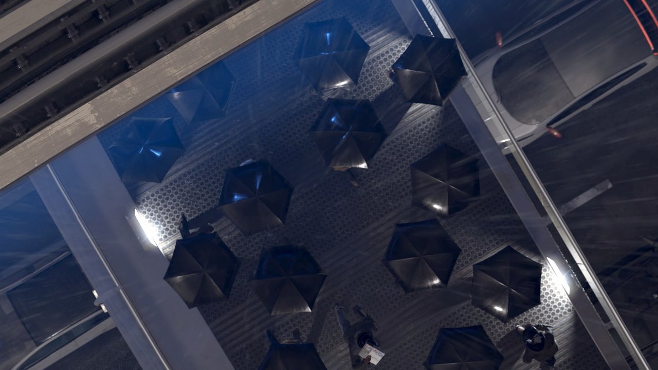 汉克和康纳从车上下来,密闭的车内让汉克很难受,雨点跳蚤一般咬住衣领,瞬间白花花一片。