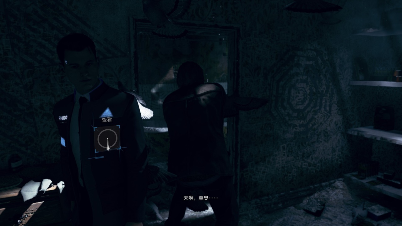 汉克捂住鼻子,带着康纳踩着渗水的木质地板,向长廊尽头走去,两旁价格不菲的油画狰狞地望着两人,长廊尽头的木门用漆黑深邃的瞳孔装载着恐惧,寒冷。