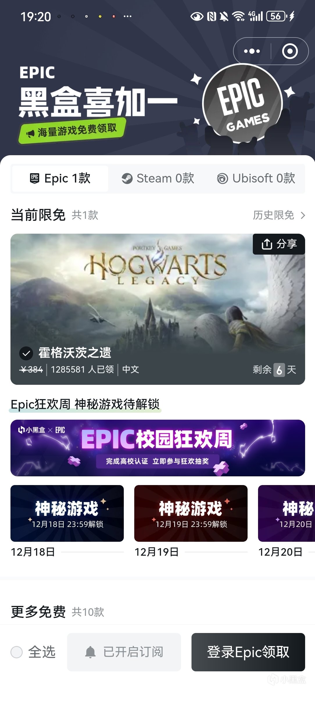 我们在上图中可以发现,这款游戏的领取时间是一周,之后没天都会再送出一款神秘游戏,每款的领取时间为24小时,届时就没有那么长的领取时间啦,各位盒友千万不要错过!