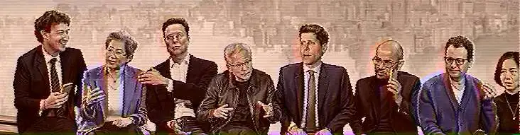 大伙儿仔细瞅瞅这张封面,黄仁勋、奥特曼、马斯克这几位科技圈的顶级大佬排排坐,画面致敬的是“摩天楼顶上的午餐”。