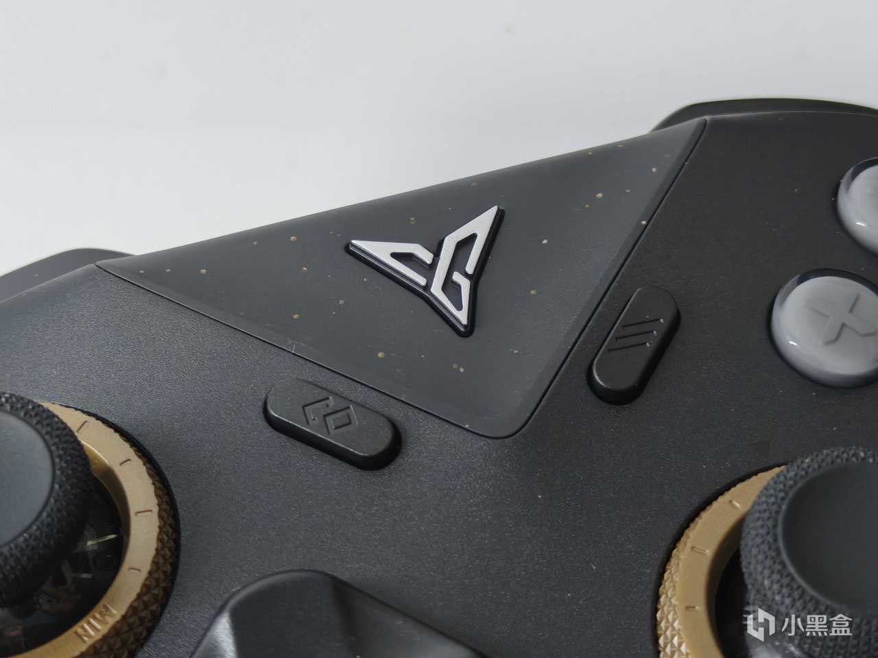 正面的LOGO改为浮雕式按键,周围区域细闪金粉使用了点缀,取消了RGB灯带的浮夸,提升了高级感。这个LOGO键和八5一样可以直接用来当开机唤醒功能,操作更方便。