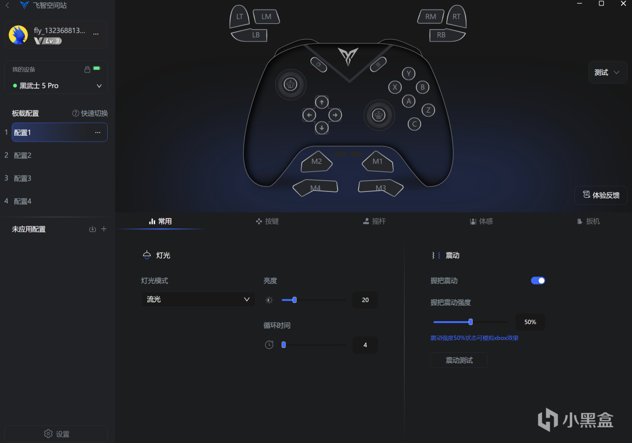 驱动方面,升级到了飞智空间站4.0,功能体验更完善,按键映射、摇杆曲线、震动强度都能自由调节,就算是新手也能快速上手,自定义操作方案都很方便。