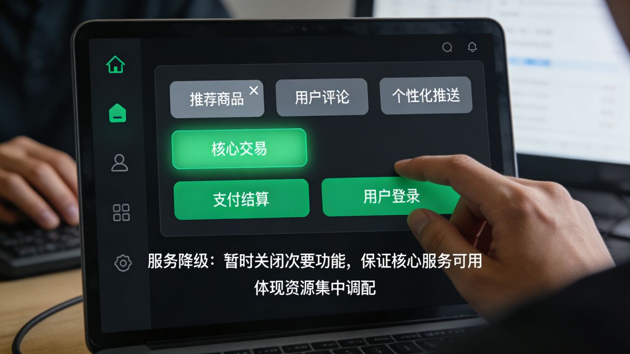 3.服务降级:暂时关闭次要功能,保证核心服务