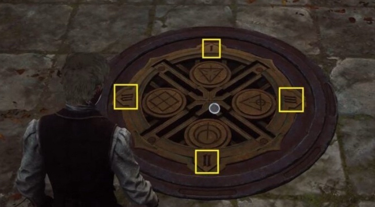 需要来到大桥上看井盖的信息,四个符号分别对应I、II、III、IV这四个罗马数字,桥旁边的火盆下方有对应的图案和罗马数字