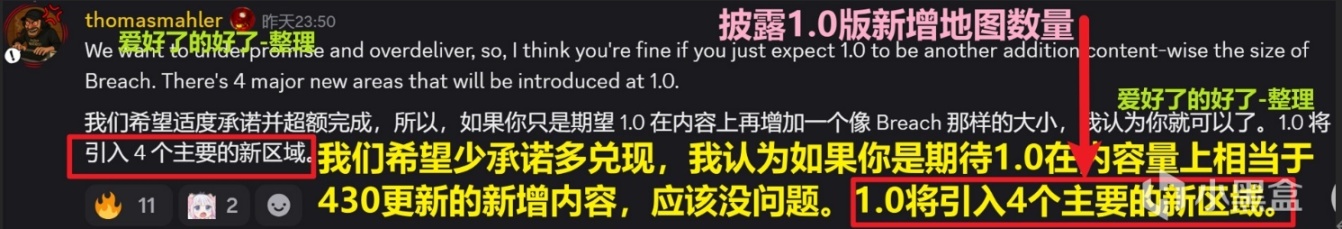 对于1.0版本时所推出的新地图,官方CEO托马斯表示在1.0版本时将推出有4个主要新区域,新地图数量是430剧情更新时的一倍。整个圣地岛除了所推出的地图区域以外,其它剩余部分将采用DLC形式推出。