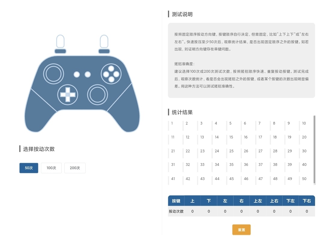方向键串键测试就是可以验证方向键每个按键的独立性,避免出现按键串位(比如按“上”却触发“上+右”)。