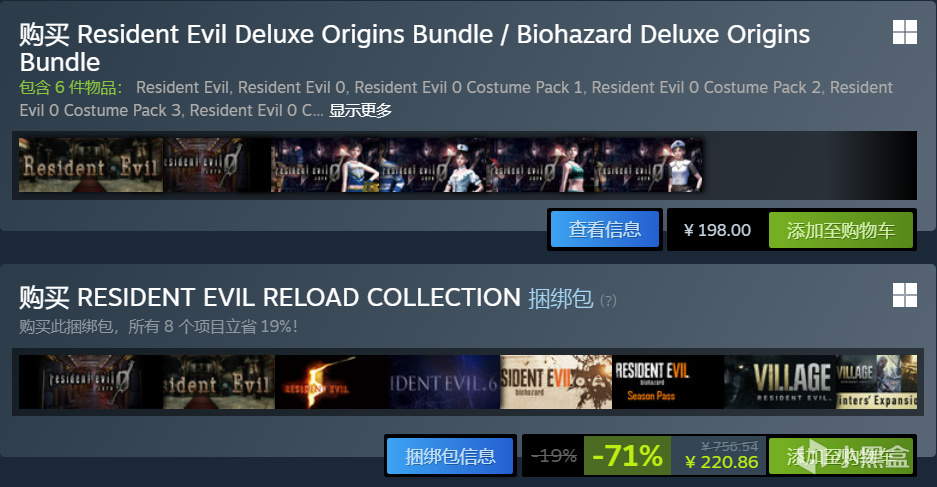 steam官网提供生化危机系列的demo