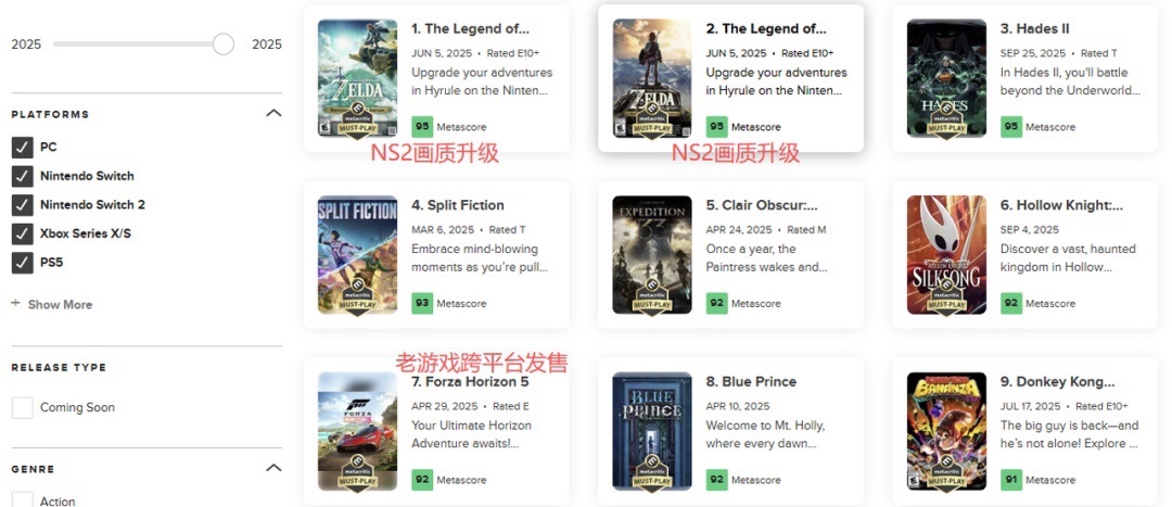 (2)年内M站媒体评分越高的游戏,选上去准没错,但别忘记一碗水端平。