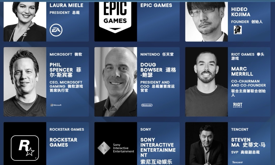 TGA背后有一套豪华的顾问团队——他们大多数都是全球游戏行业里的巨头,有索尼、任天堂、微软这样的经典主机御三家,也有EA、R星、腾讯、育碧、V社在内的一众游戏大厂。