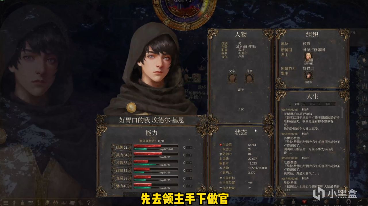 也可以加入匪帮或者占领无主领地后独立 也能跑商,国家有技术升级,有外交系统,人物可以结婚生孩子,总之各种细节机制还都是有的