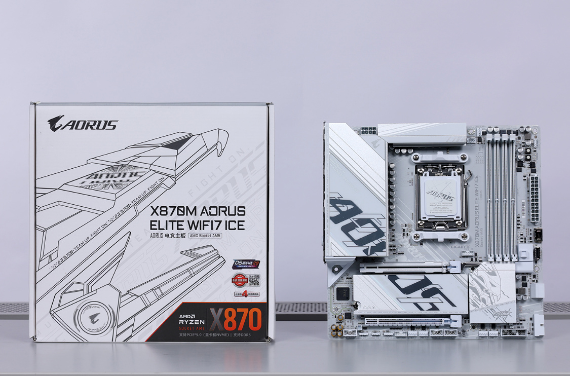 可以搭配97X的主板从650到X870可以让人挑得眼花缭乱,也各有理由,看个人喜好也看个人预算。咱今儿选择的是这款白色颜值主板,技嘉X870M AORUS ELITE WIFI7 ICE主板。
