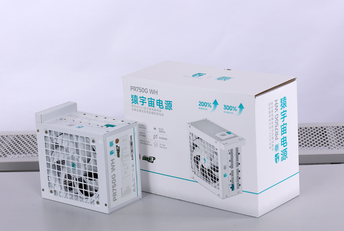 搭配CH160PLUS机箱,电源推荐这款采用创新侧置输出端口布局,专为电源前置机箱及背插主板量身定制的九州风神PR750G WH金牌全模组电源。白色压纹包胶线,不止好看,理线也方便。