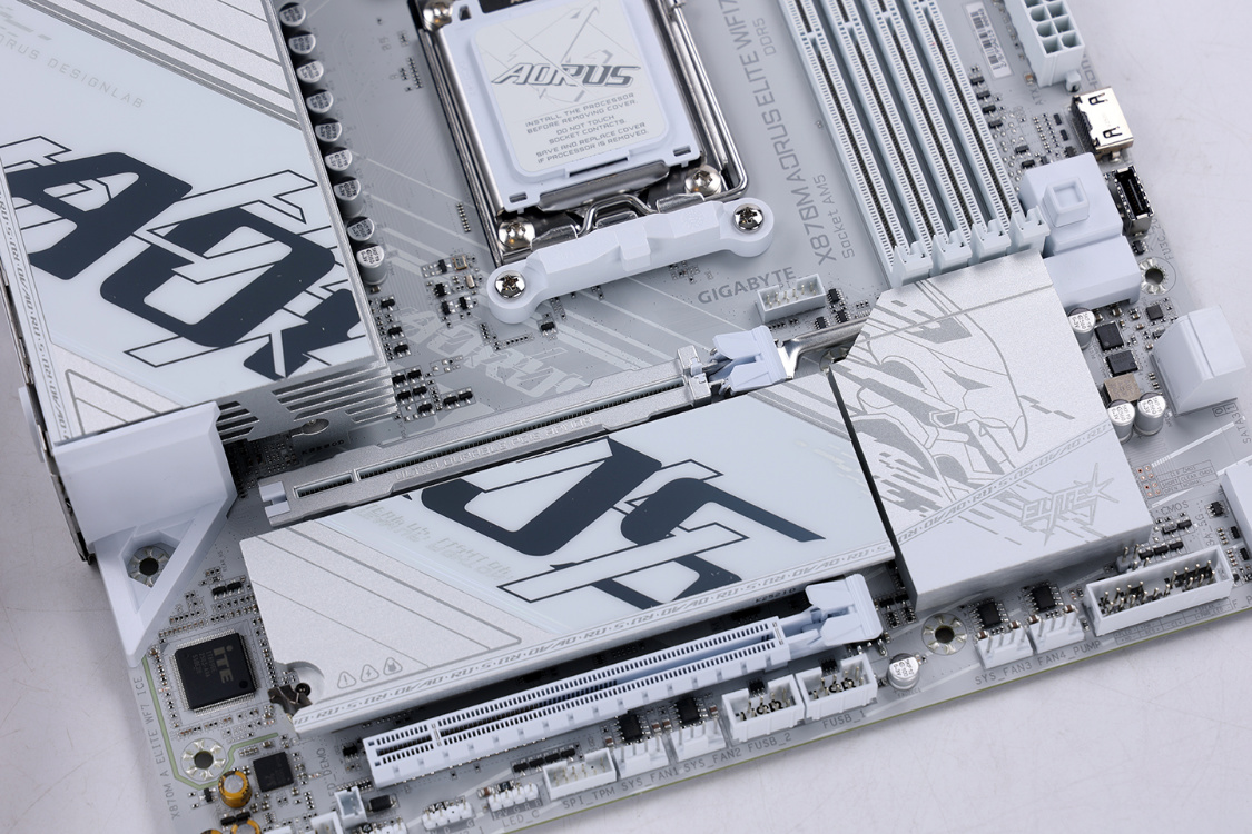 4条白色DDR5 DIMM内存插槽,支持最高8200MT/s+的内存速率,最大支持单条64GB的内存容量,最大容量可扩展到256GB的内存容量。搭配技嘉D5内存黑科技,可以轻松拉满D5内存性能。