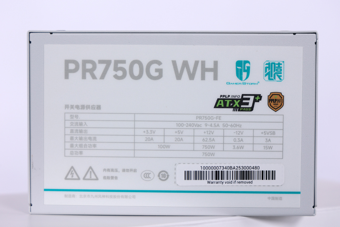 电源搭载全日系电解电容,并通过了PPLP.info金牌能效认证和ATX 3+认证。电源在50%的负载下,转换效率可达90%,在80%的负载下,保持时间可达16ms。电源总功率为750W,其中,+12v最大输出电流为62.5A,最大组合功率750W,+5V与+3.3V最大输出电流均为20A,联合最大输出功率为100W;+5V待机输出为3A,最大组合功率为15W。同时,电源提供了过流、过压、欠压、抗浪涌等八大保护机制,搭配上10年的超长质保保障。