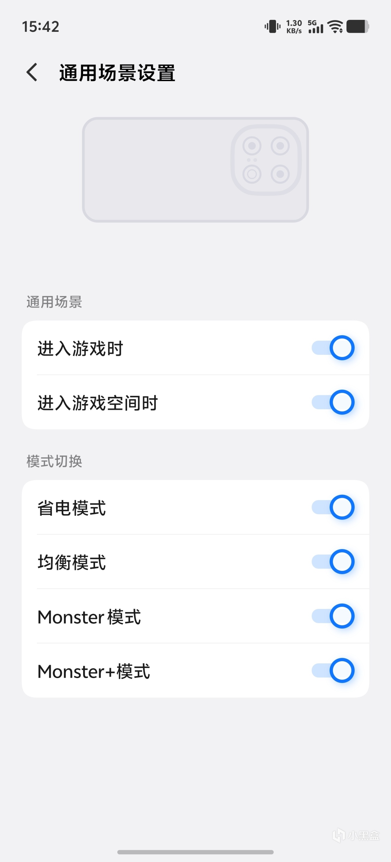 打开【设置】>【游戏魔盒】>【游戏光效】>【后置光效】>【通用场景设置】,就可以在更多的游戏中打开能量光环了