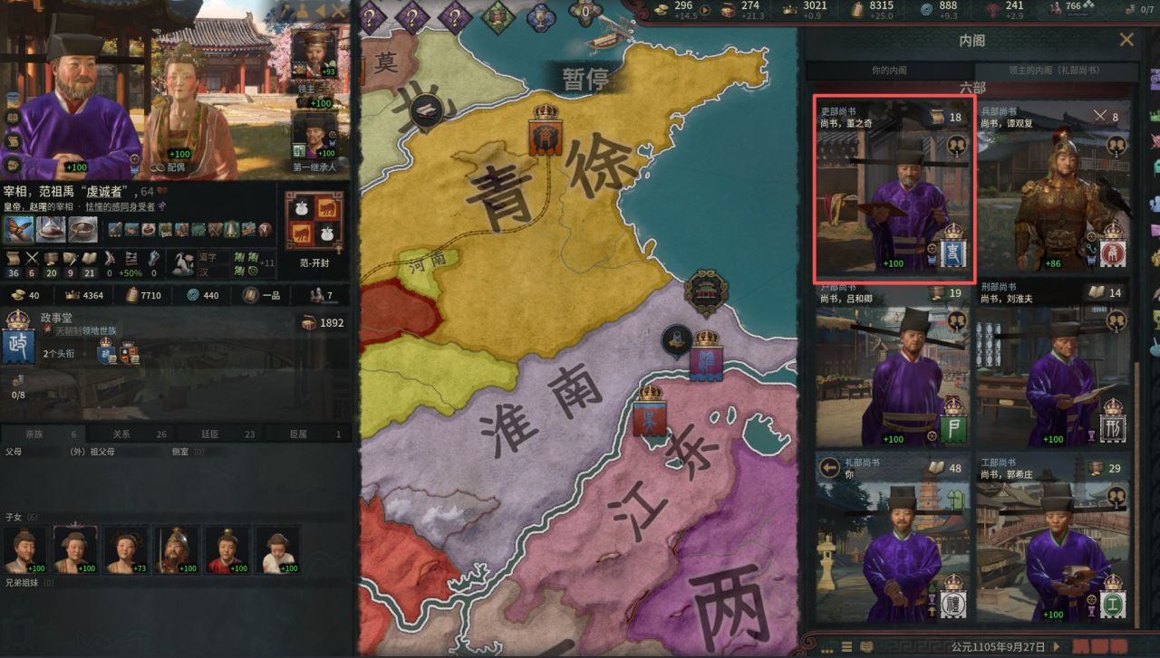 與之類似,遊戲裏的吏部尚書也可以大幅度提高心儀的候選人的分數