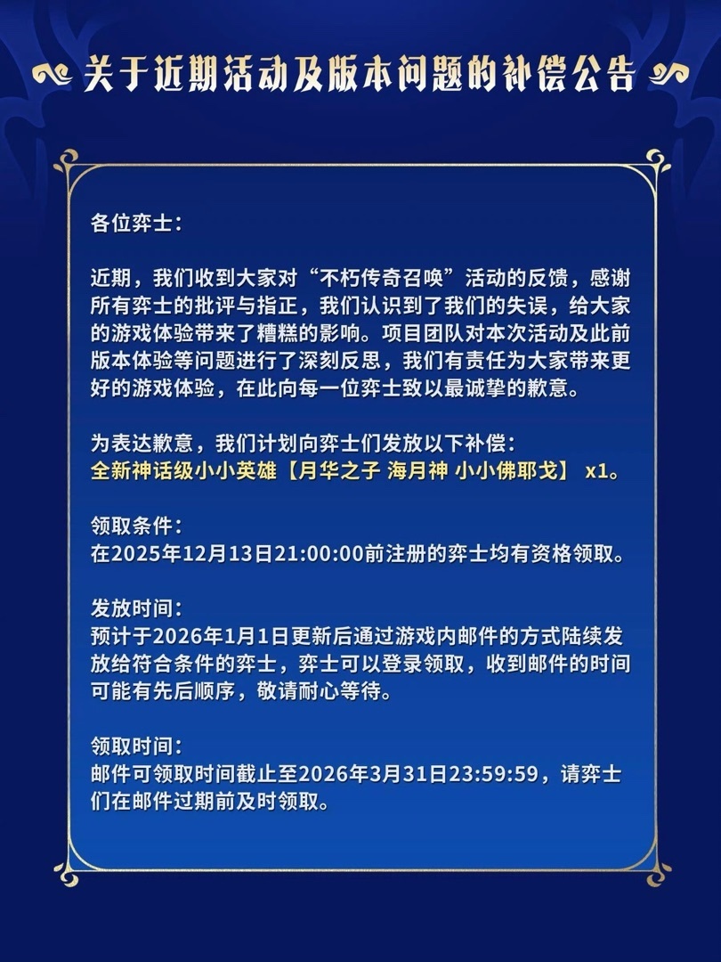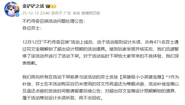 迫于压力下,金铲铲官方再次发布公告,并对全服玩家进行补偿: