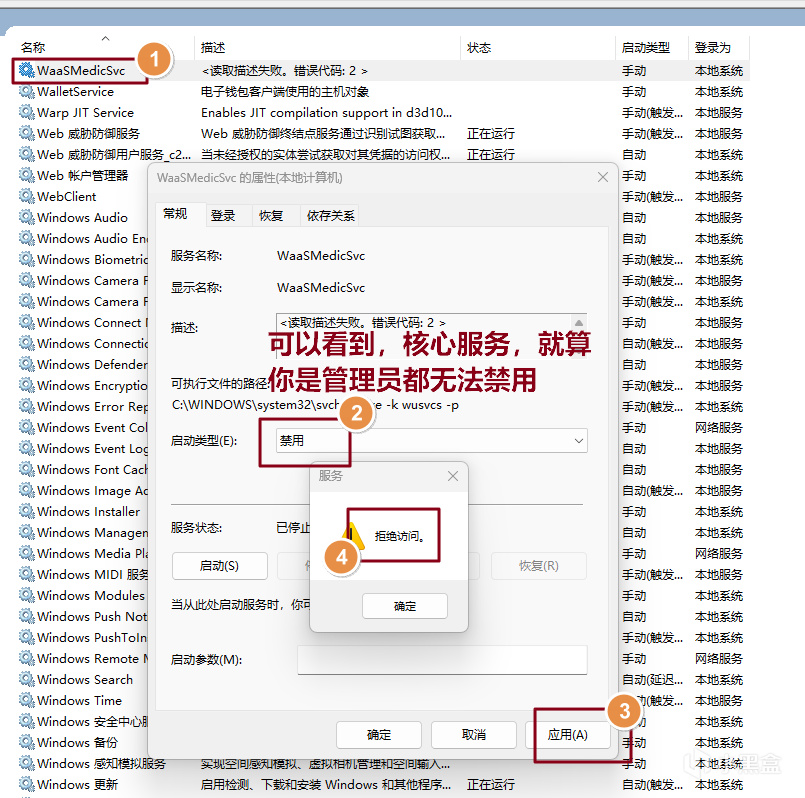 win更新的核心服務wassSMedicSvc是無法禁用的