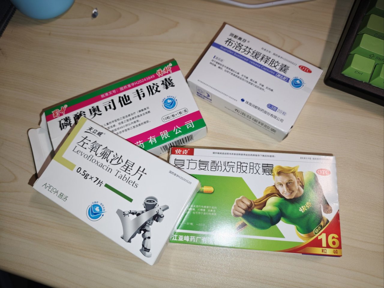 今天从医院交了病历回图书馆以后眼眶发胀,头疼欲裂,思维昏沉,顿感不妙,应是偷懒没戴口罩不幸中招,没什么呼吸道症状纯头疼也不烧,应该是病毒,遂外卖了快克和奥司他韦
