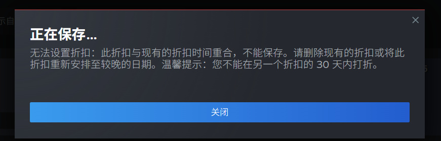 然后我们就各种找方法,Steam也没有对应修改的地方,只是在你想修改这个80%折扣时候会提示: