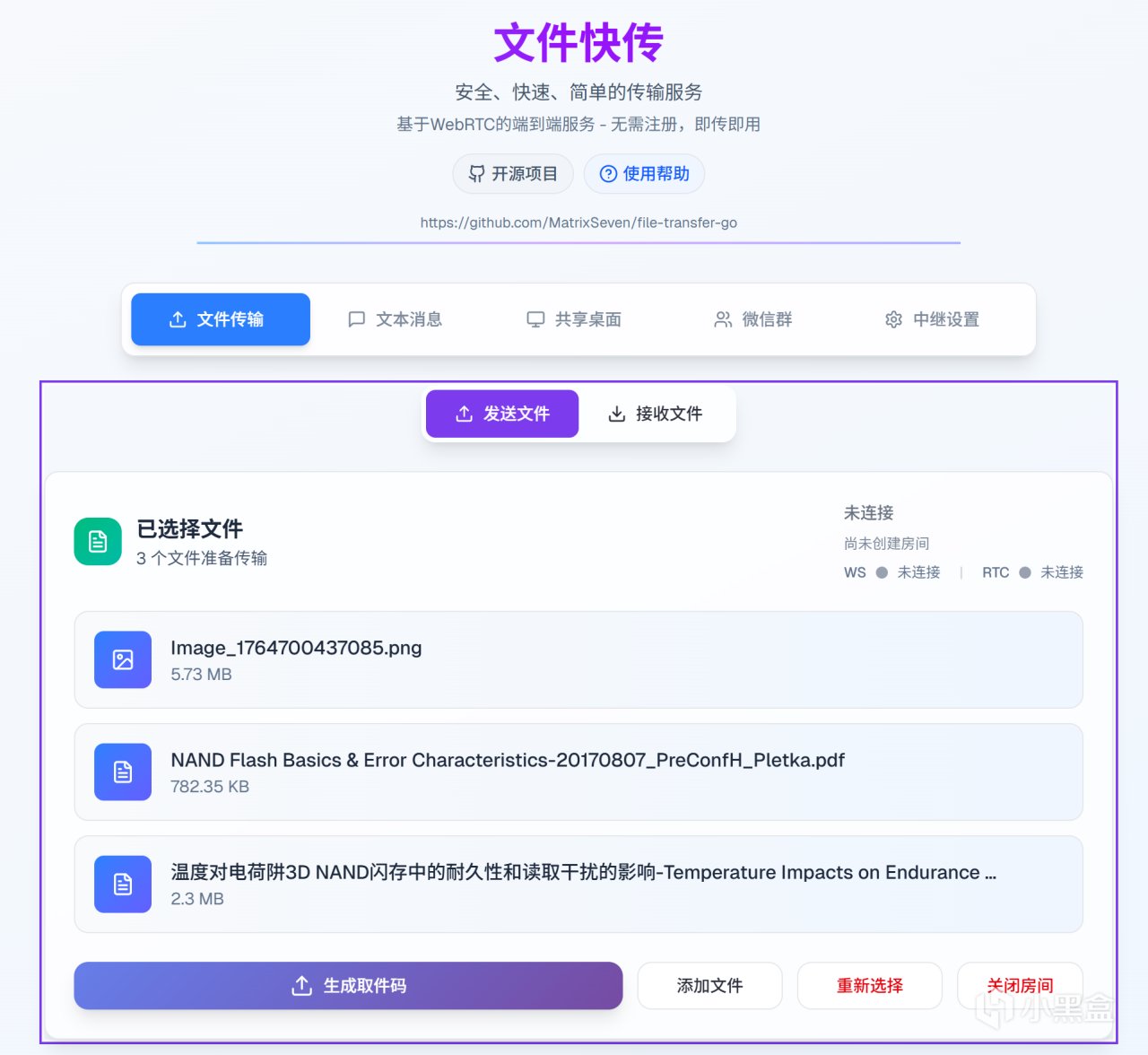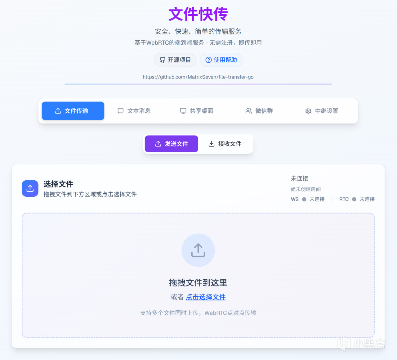 雖然市面上已經有不少文件傳輸工具,但要麼是先把文件傳輸到中轉服務器存在泄密風險,要麼是需要掃碼註冊或者關注GHZ才能使用的流氓軟件。