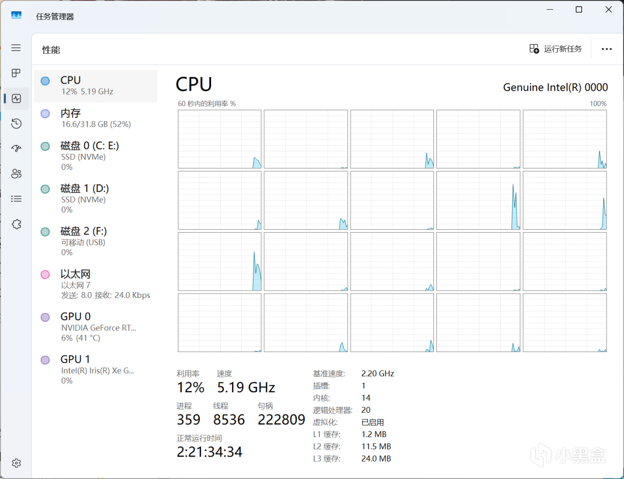 第一行为你是cpu核心数,第二行是线程数,这在任务管理器都可以找到