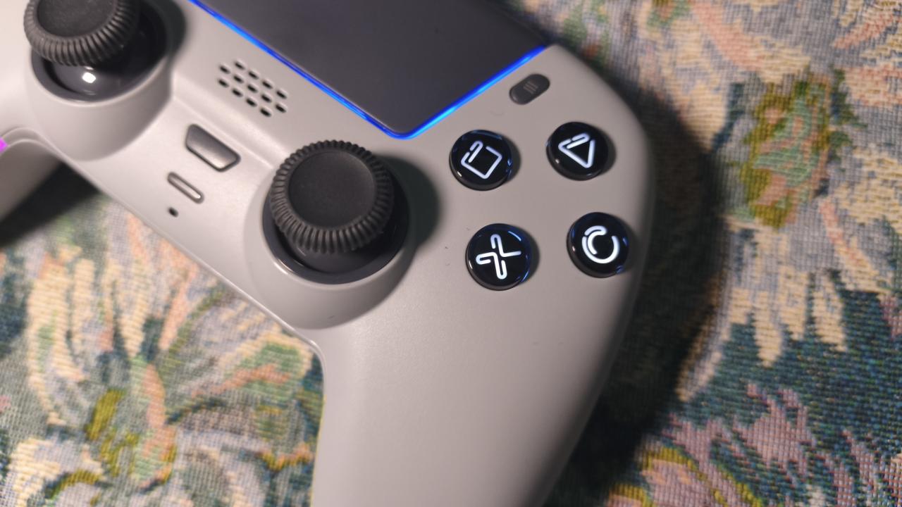 按键和3.5mm耳机孔、触控板、十字键等等布局都和ds5一致,此外还有两个背部拓展按键,贴合手指,设计的相当不错。可以在背键中设置拓展宏,想搓出复杂的招式会变得更简单,更轻松的操作可以打出更华丽的表现!△,○,X,□和十字键均为导电胶,回弹有力,喜欢导电胶的朋友一定会很享受~