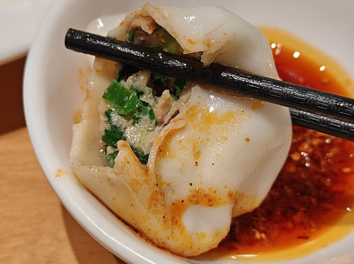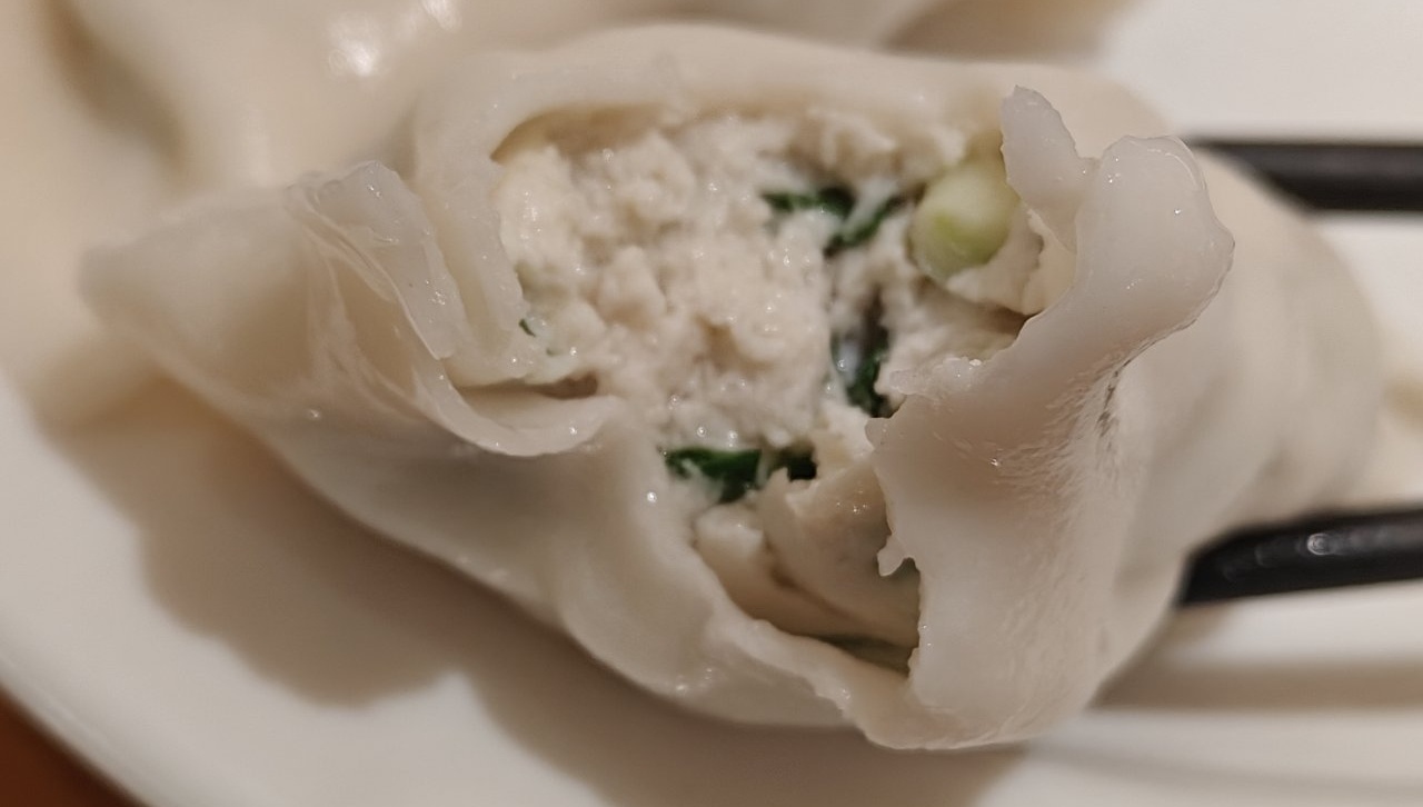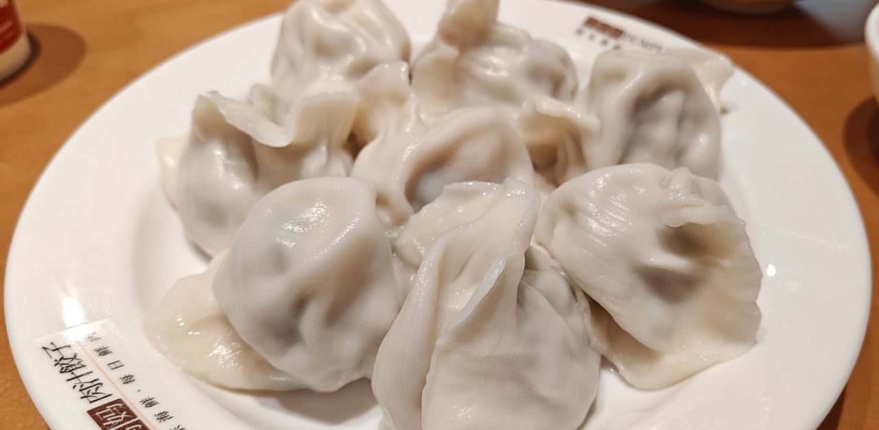 店名的“肉汁饺子”没有叫错,饺子确实汁水充盈,一口下去会爆汁的那种,但由于饺子实在太大了,没法一口一个,只能咬开了吃,难以避免汁水流出来。
