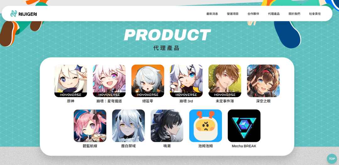 官方网站显示,NIJIGEN此前在港澳台地区代理过包括《原神》《崩坏:星穹铁道》《鸣潮》《解限机》在内的多款大厂作品,也曾经在2021年接手了《碧蓝航线》港澳台服务器的代理权,与蛮啾之间早早建立了合作关系。
