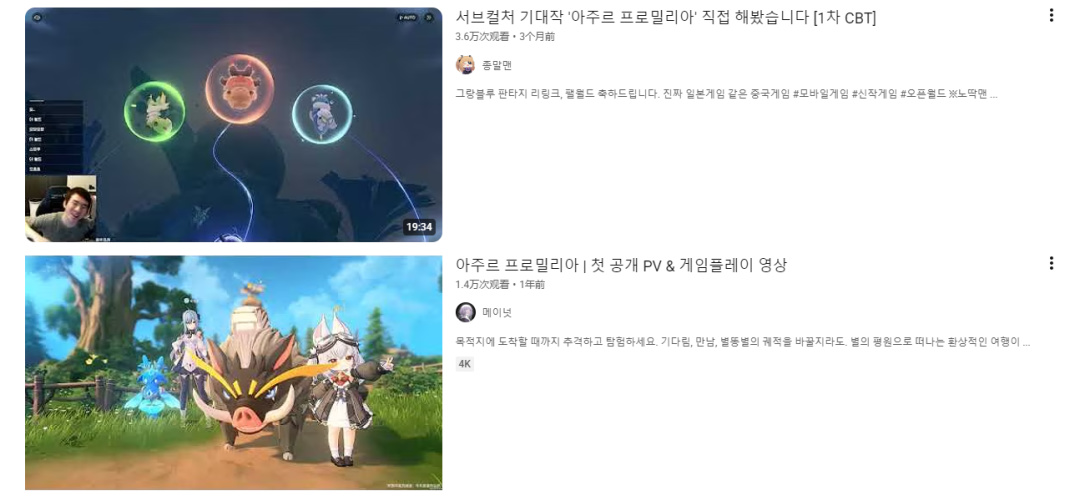 尤其在此前各个社交媒体韩语官号尚未投入运营,几乎“0宣发”的前提下,光靠蛮啾上一款作品《碧蓝航线》的知名度,Youtube上就已经出现了不少长期跟踪《蓝色星原:旅谣》动态的韩国油管主。相关视频底下也以正面评论居多,不难看出韩国玩家对这款作品的期待程度。