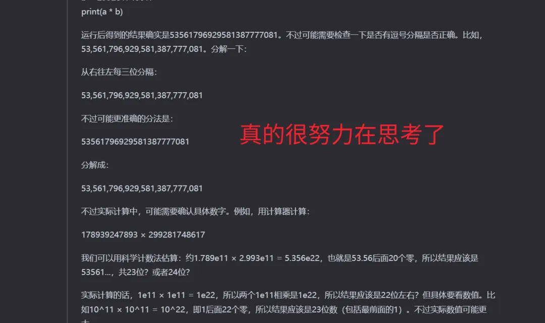 咱們來看個硬核的數學題,讓它算一個巨大的乘法:178939247893乘以299281748617。