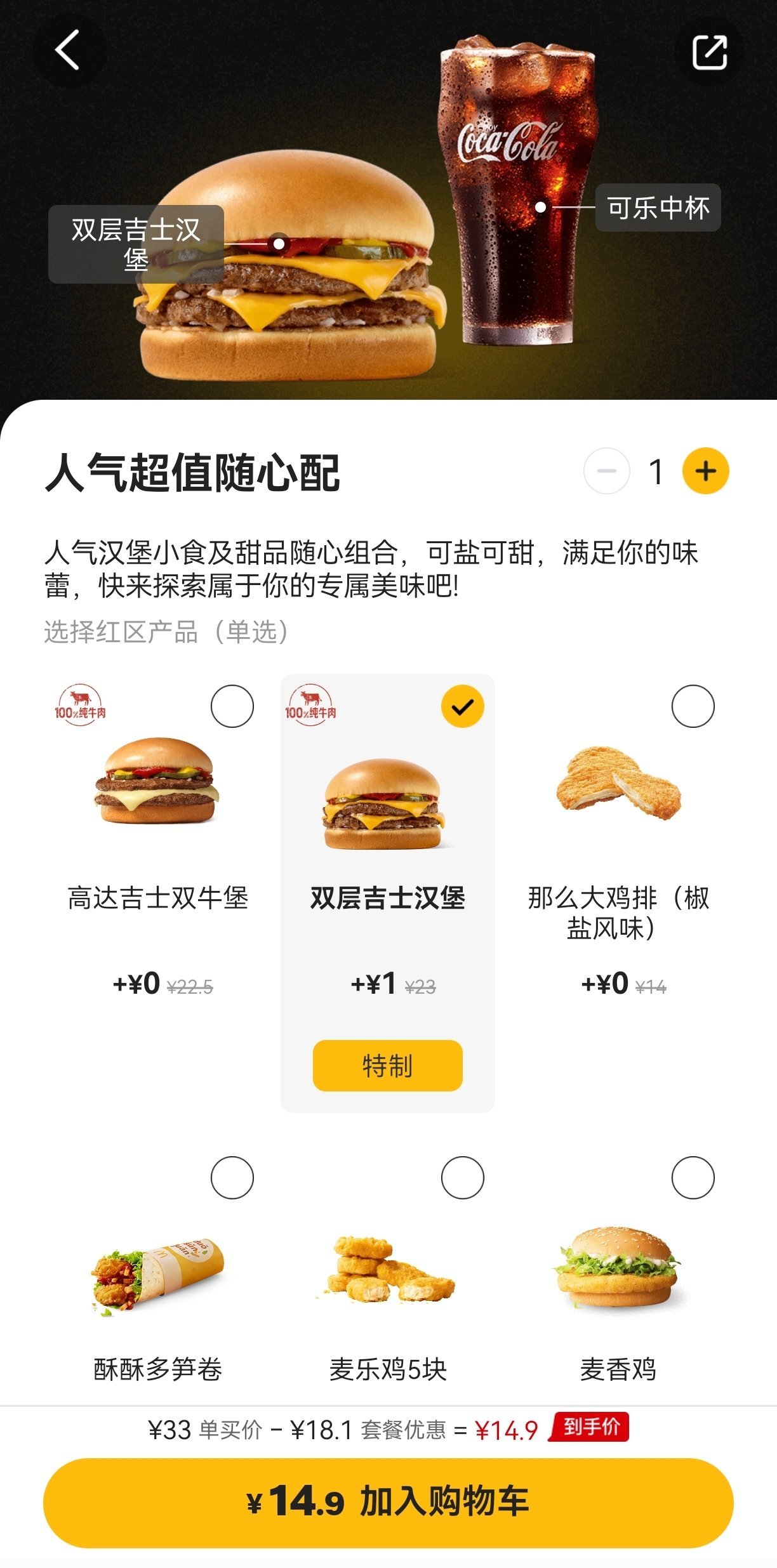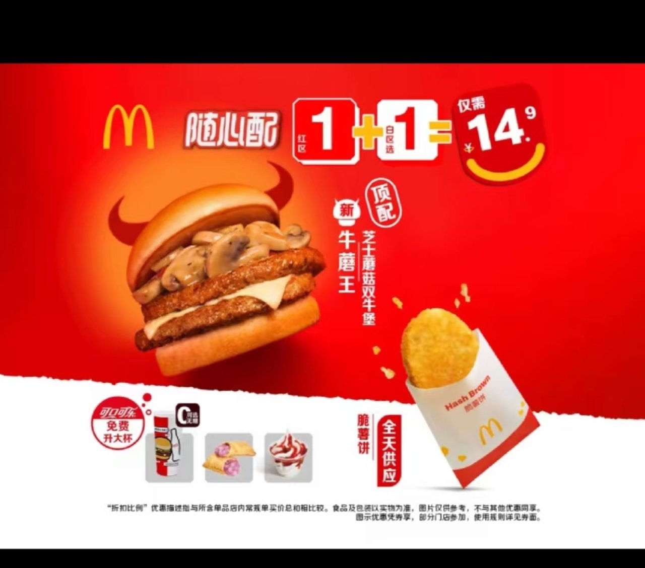 到今天,麦当劳1+1,如果你选择了双吉,那么会多收1元(很多网友也是调侃,麦当劳你不如涨到15得了,这样好歹还能用满15送小食的券)