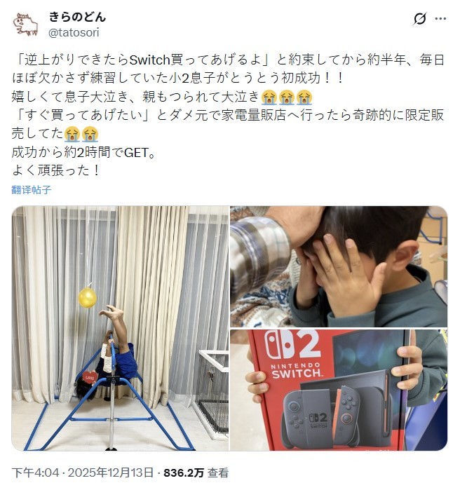 推友【きらのどん】@tatosori于近日分享了他与儿子之间的故事。