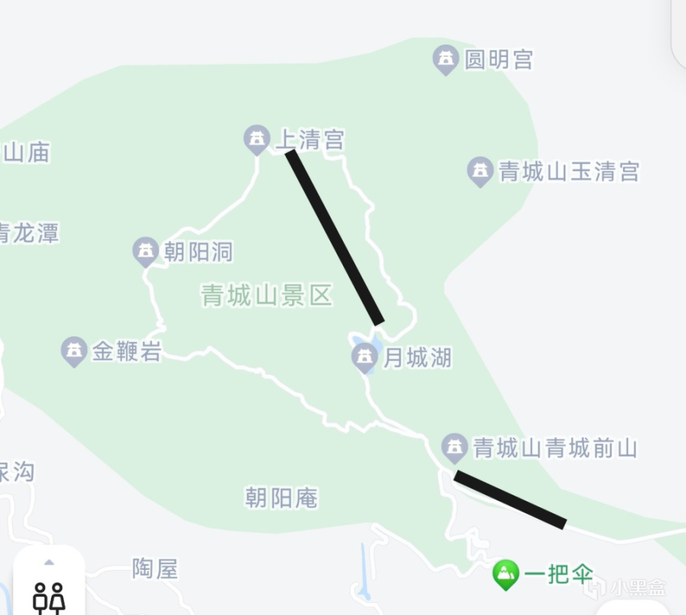 右上角穿过都江古镇,随后需要爬山,然后可以入内
