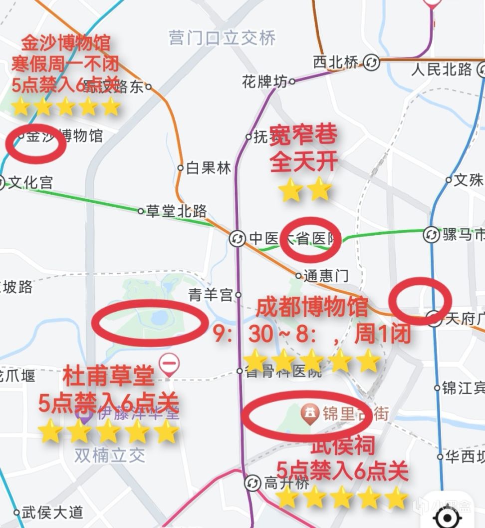 武侯祠/杜甫草堂是对应诗文,熊猫大道是熊猫,金沙博物馆是太阳神鸟等等...