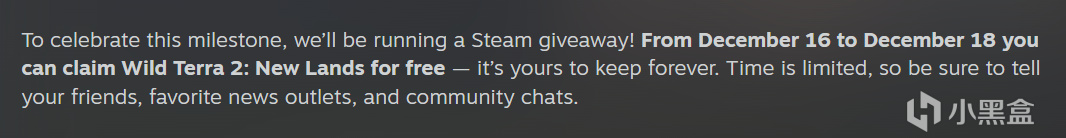 從 12 月 16 日至 12 月 18 日,您可以免費領取《荒野之地2:新**》 ——永久擁有。