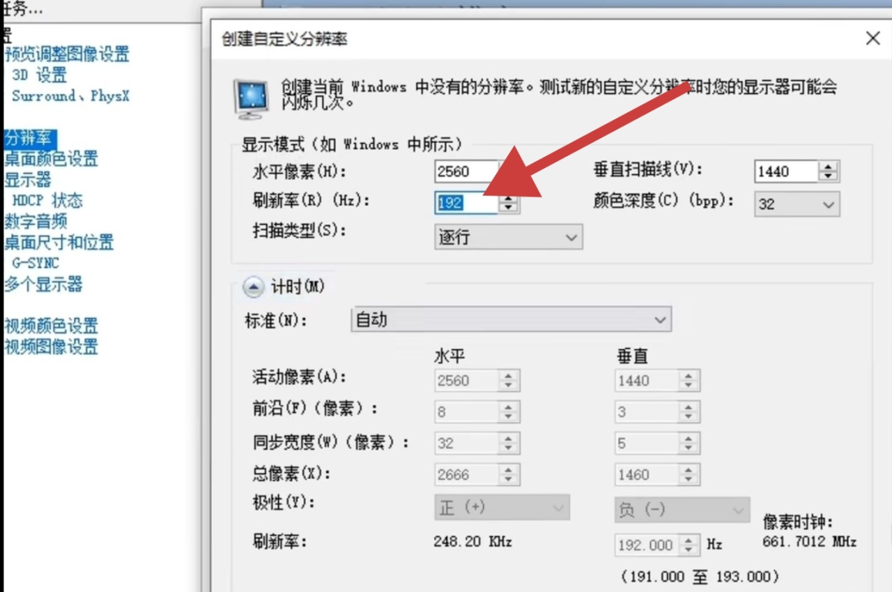 請大家在原分辨率和原有刷新率的基礎上,逐步提升刷新率數值,每次調整幅度建議爲1-2Hz