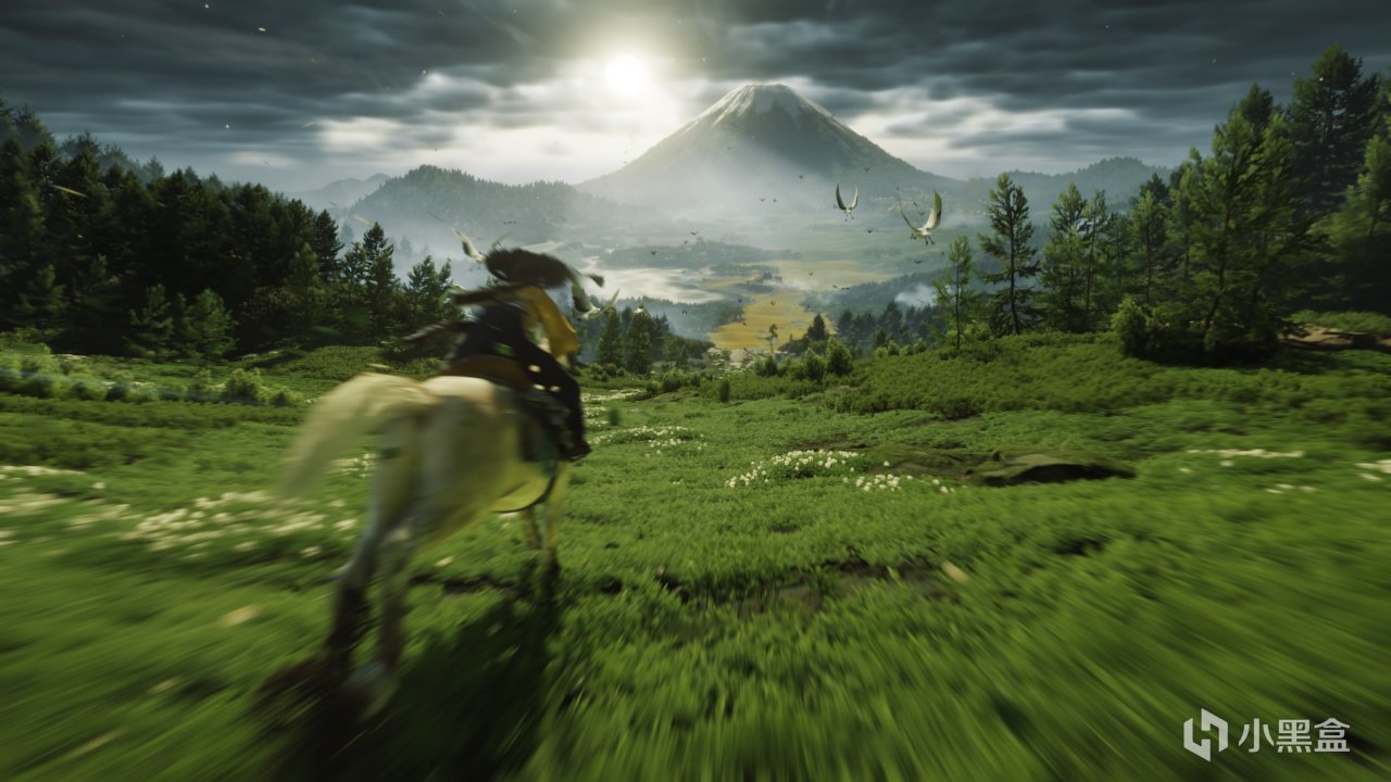 就游戏的开场美术表现叠加BGM的绝美体验来说,给我带来的感觉是羊蹄山之魂在对马岛的基础上还要超越了一些,可能是远处的羊蹄山过于显眼,也太适合作为远景。这样的开场方式让我不禁想到我心目中游戏开场做的最好的几款游戏——《塞尔达传说:旷野之息》、《对马岛之魂》、《艾尔登法环》等等。