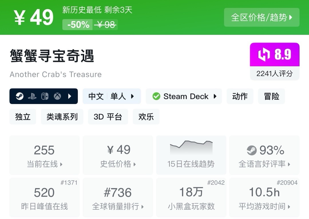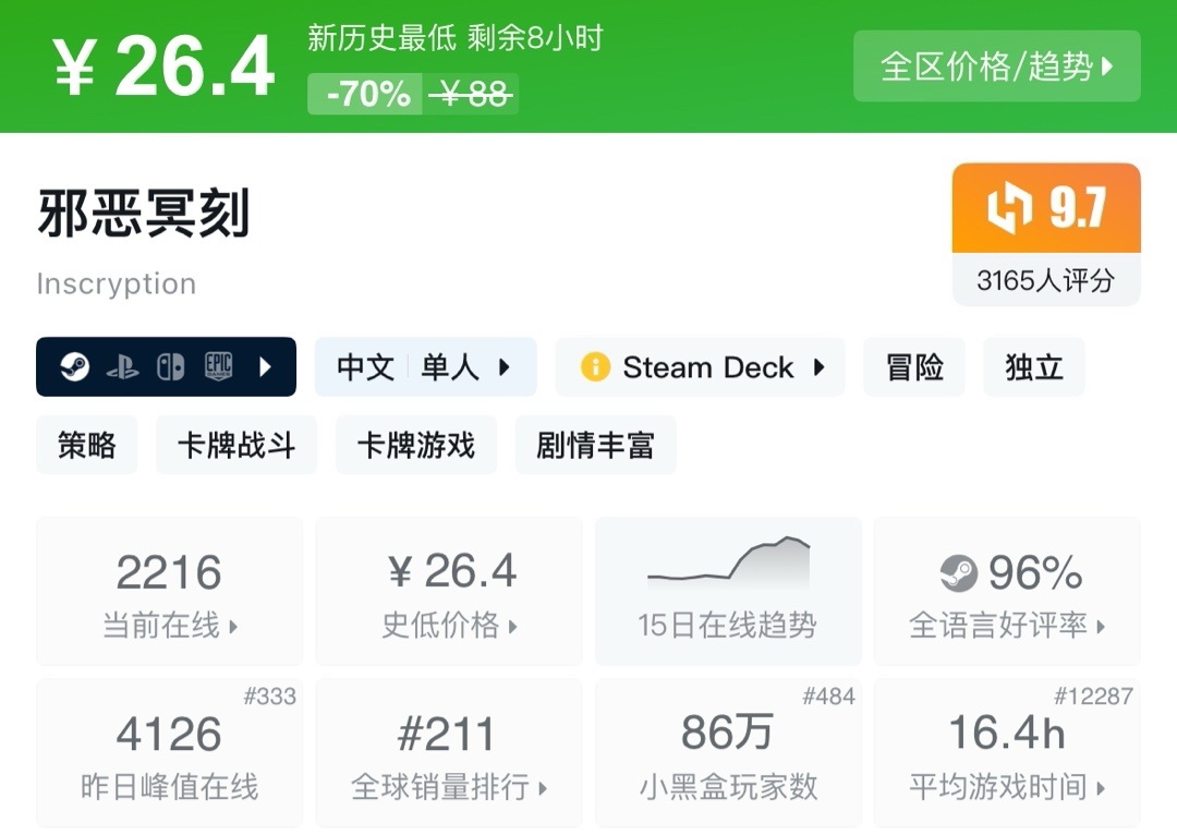 距离冬促越来越近了,不少佳作进行了大促前的抢跑,小雨子给大家整理了一部分相当不错值得买的游戏佳作!快来看看有没有你喜欢的游戏!(心仪的佳作没打折也没关系,冬促折扣信息会第一时间发出!)