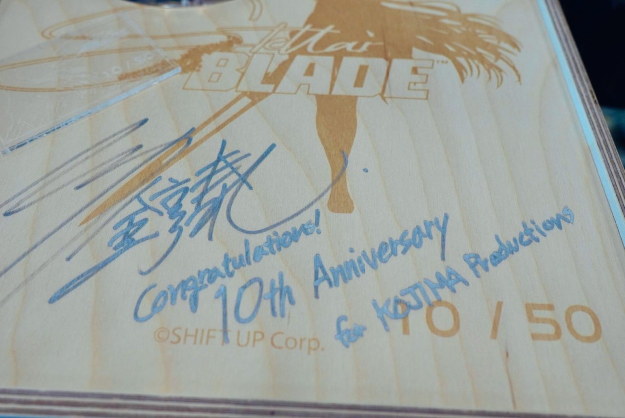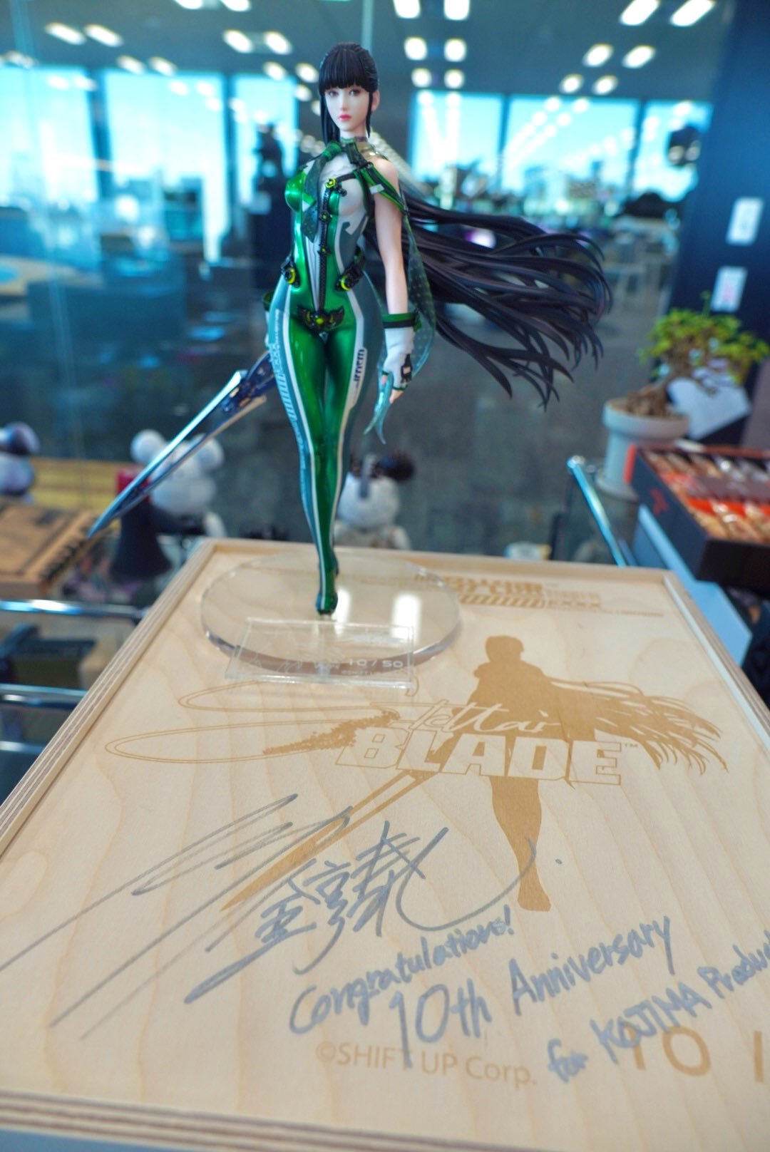 爲慶祝小島工作室成立十週年,【Shift Up】首席動畫美術師贈送給【小島秀夫】一份特別禮物(一個《劍星》主角【伊芙】手辦)。