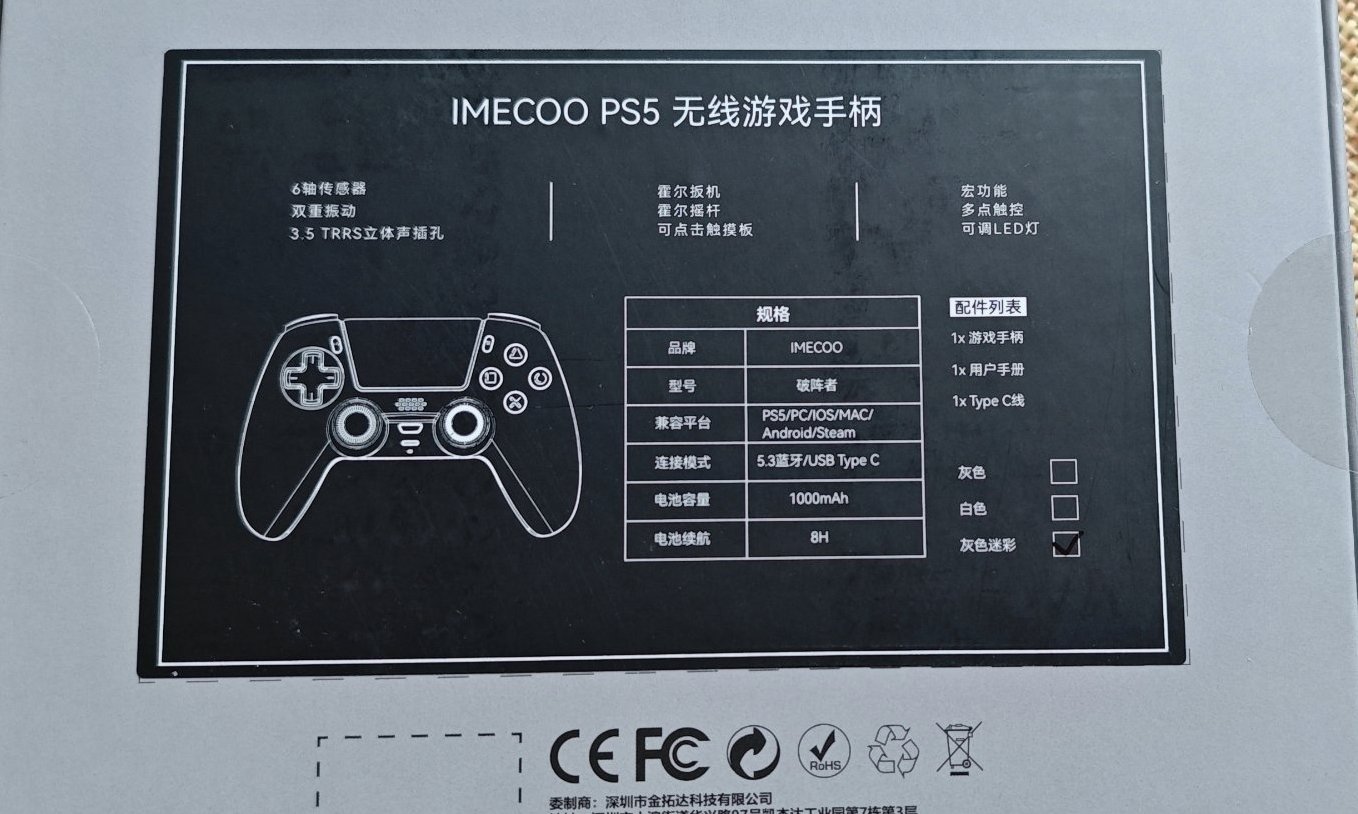 ok!大家好我是籠中雀sama,關注我帶你看好玩的硬件。讓我們來聊一聊本期的主角:號稱可以直連ps5遊玩、而價格卻幾乎只有ds5手柄一半的———IMECOO(魅谷)“破陣者”手柄。這個價格是便宜了,體驗又做到幾成呢?