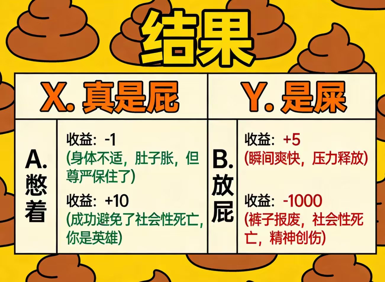 假设你面临两个选择:A. 憋着,B. 尝试放屁。