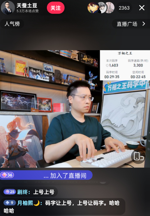 连写《万象之王》(不如《武动乾坤》!)的天蚕土豆日常直播用的也是WOB的Crush80,我倒是建议他试试雨75。(下一秒估计就是写累了,打两把王者)