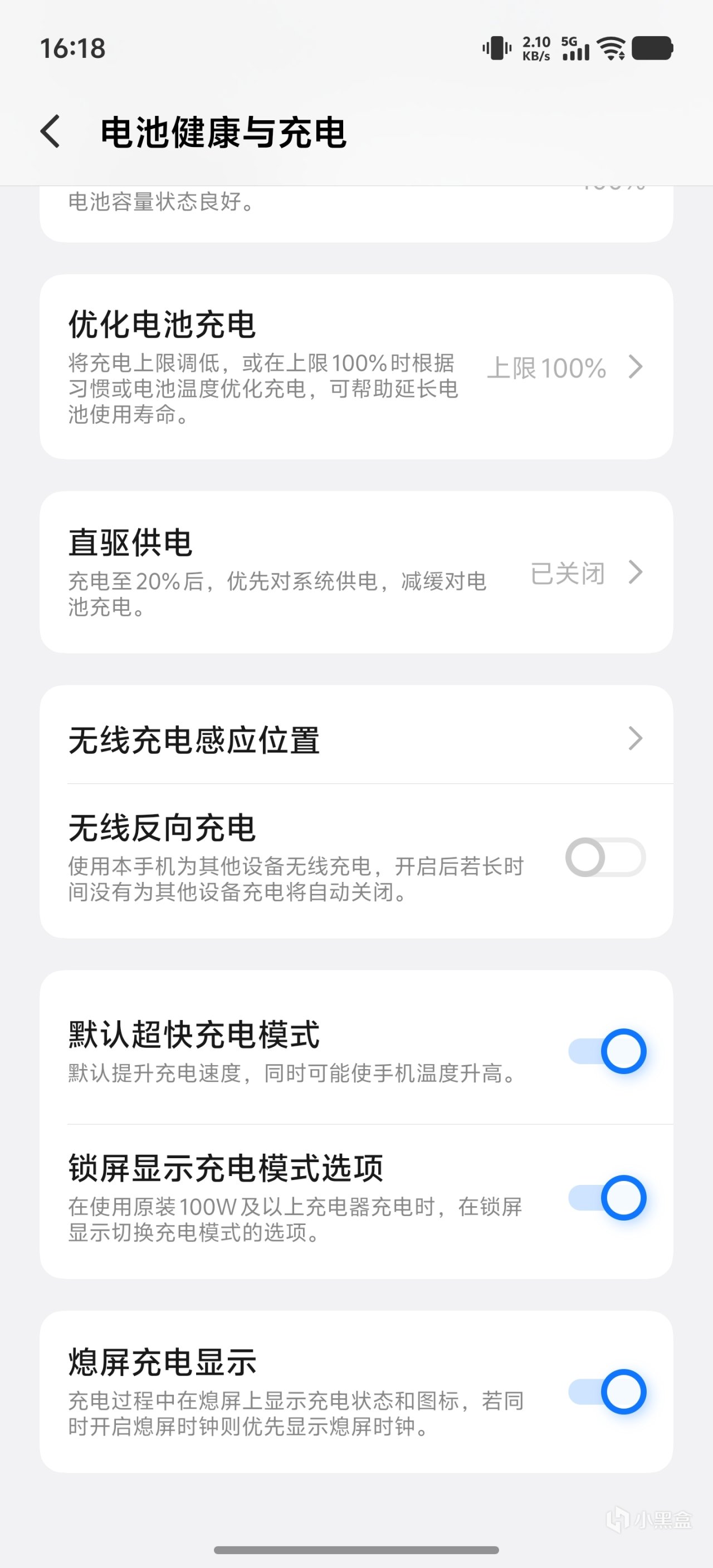 如果不想每次都单独调节,也可以进入设置>【电池】>【电池健康与充电】打开默认超快充电模式,这样就能完全解锁闪充的全部实力了,但是要注意开启后可能会使手机温度升高