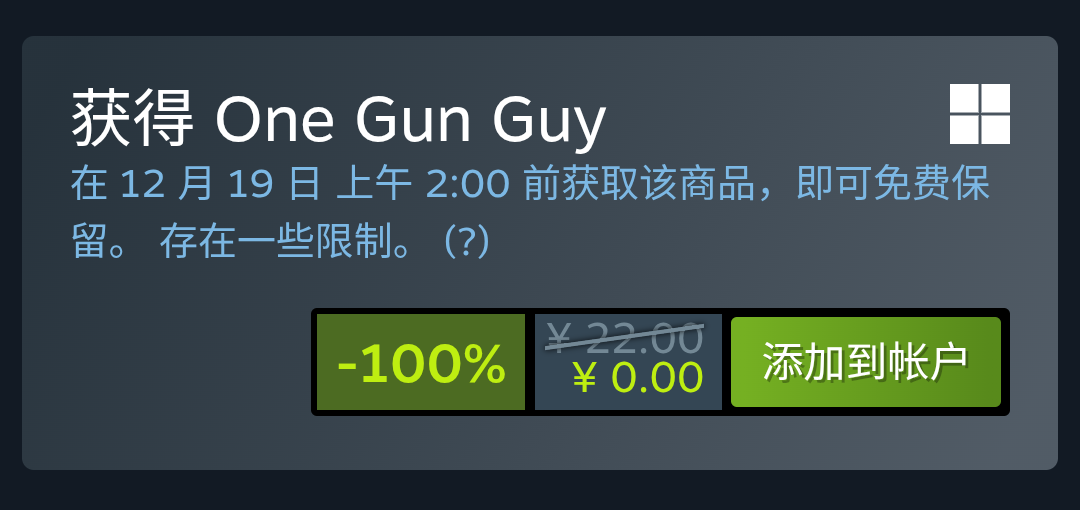 ①打開steam,搜索遊戲的名字「One Gun Guy」,點擊添加至賬戶即可