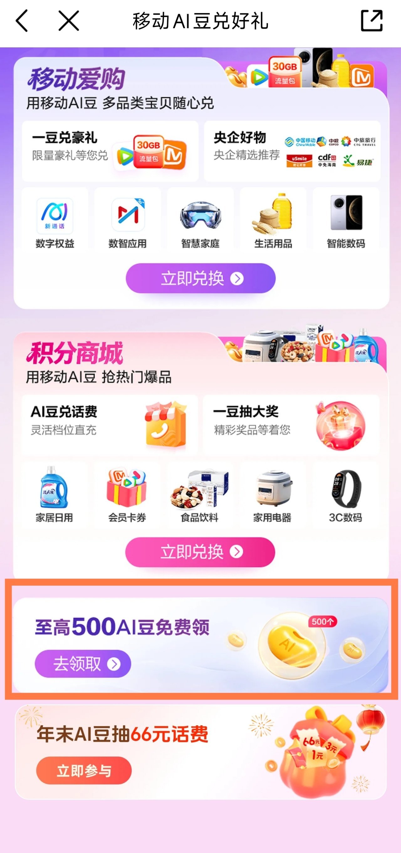 中國移動的積分系統更名爲“AI豆”,在之前還是“積分”。