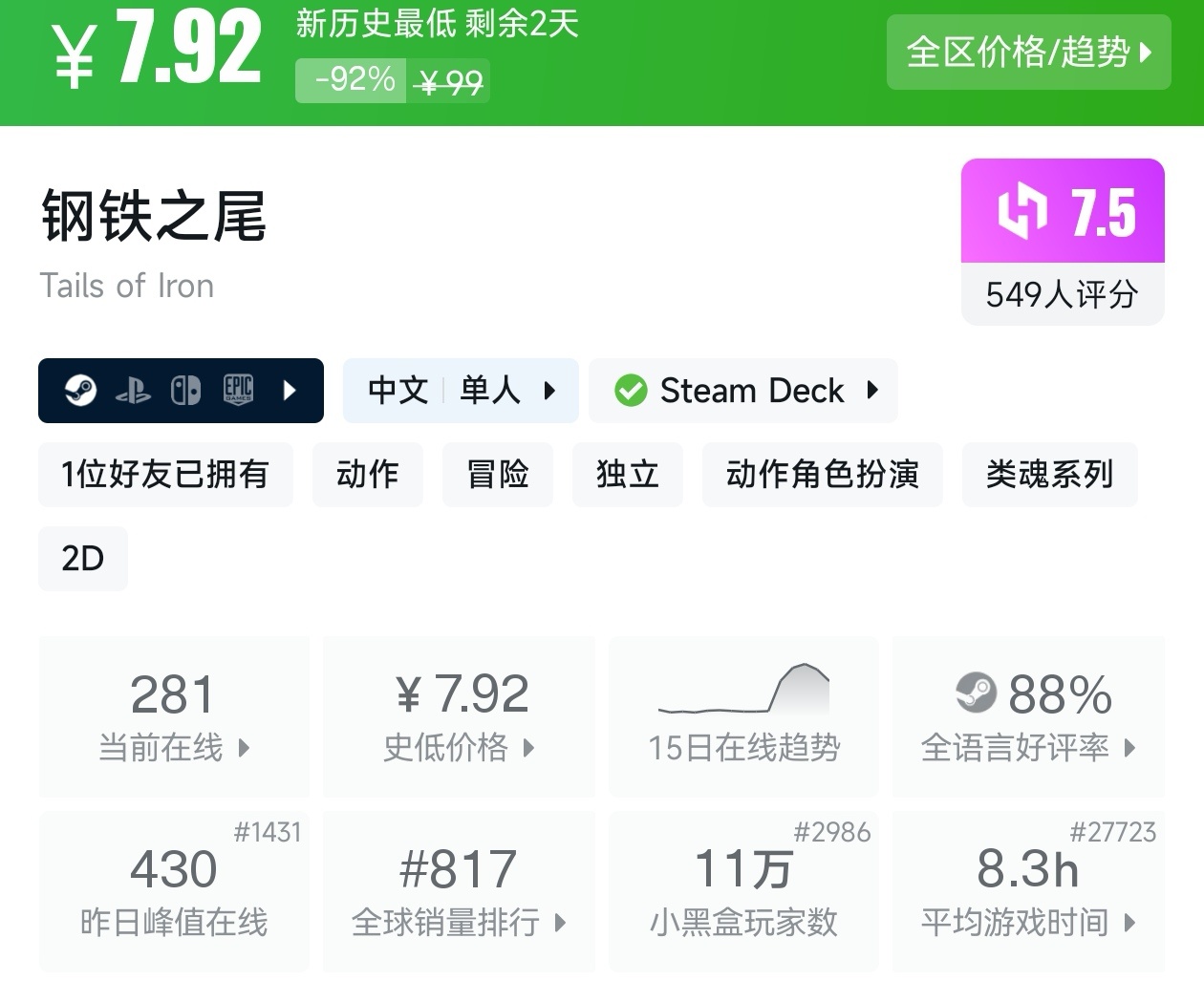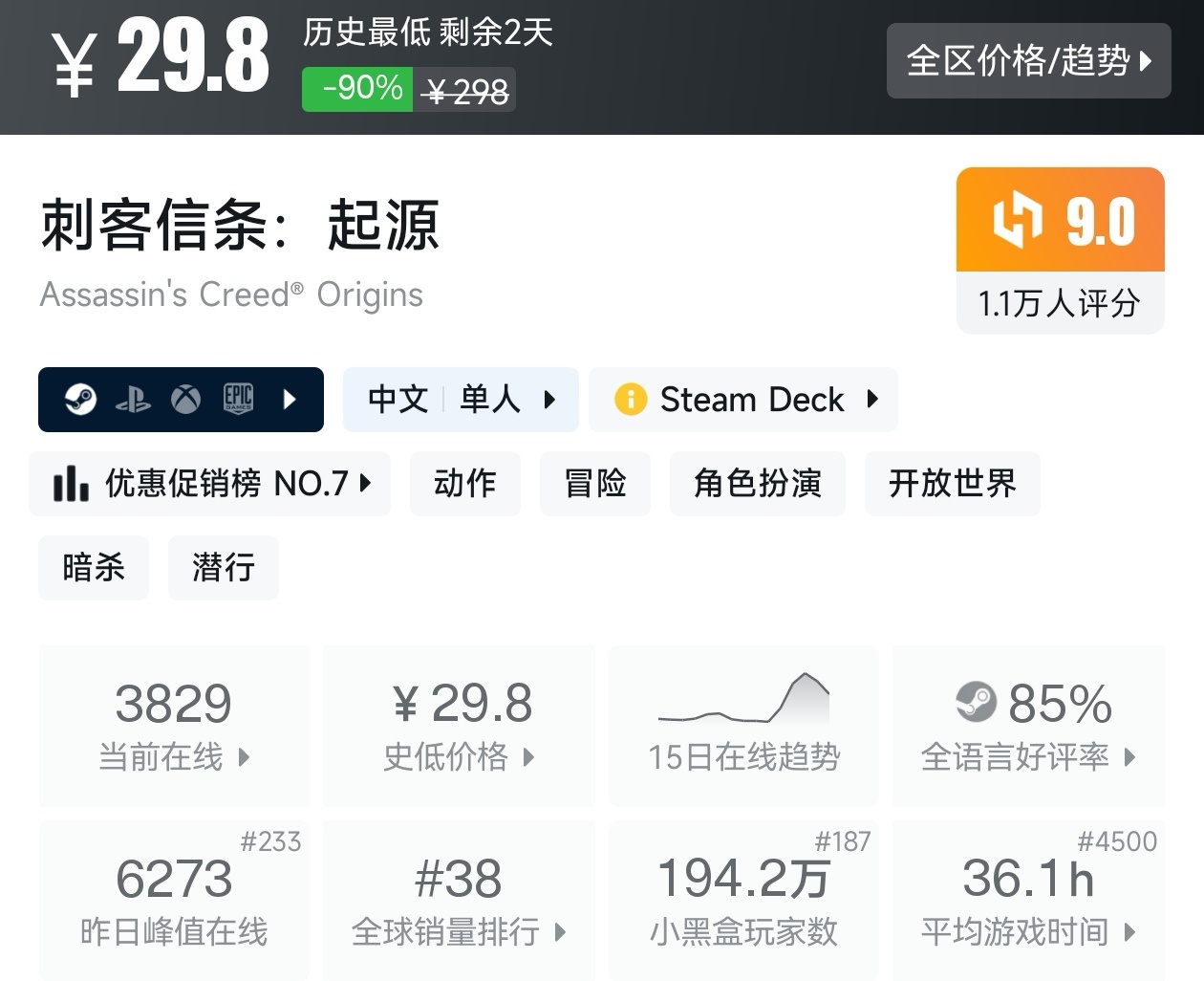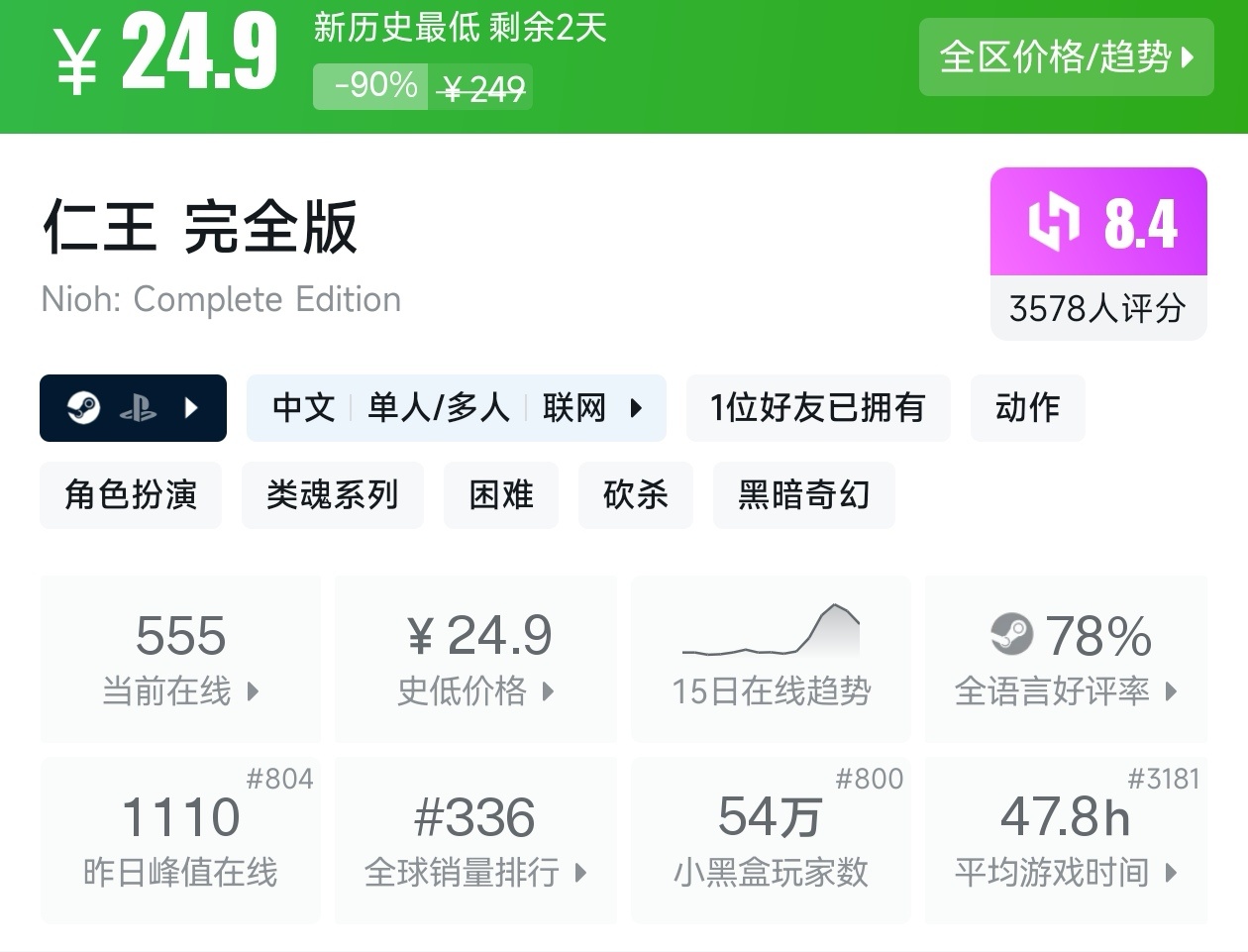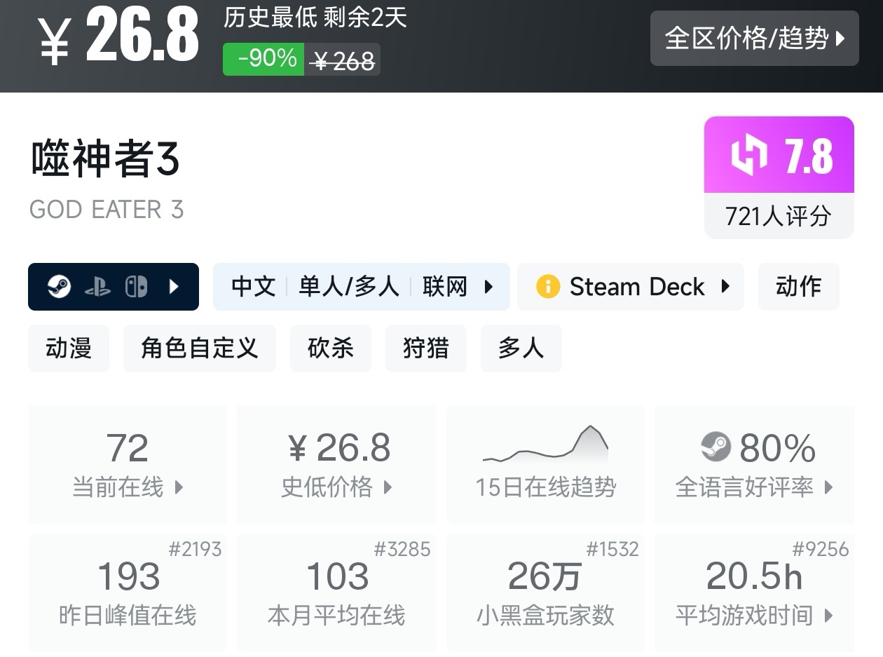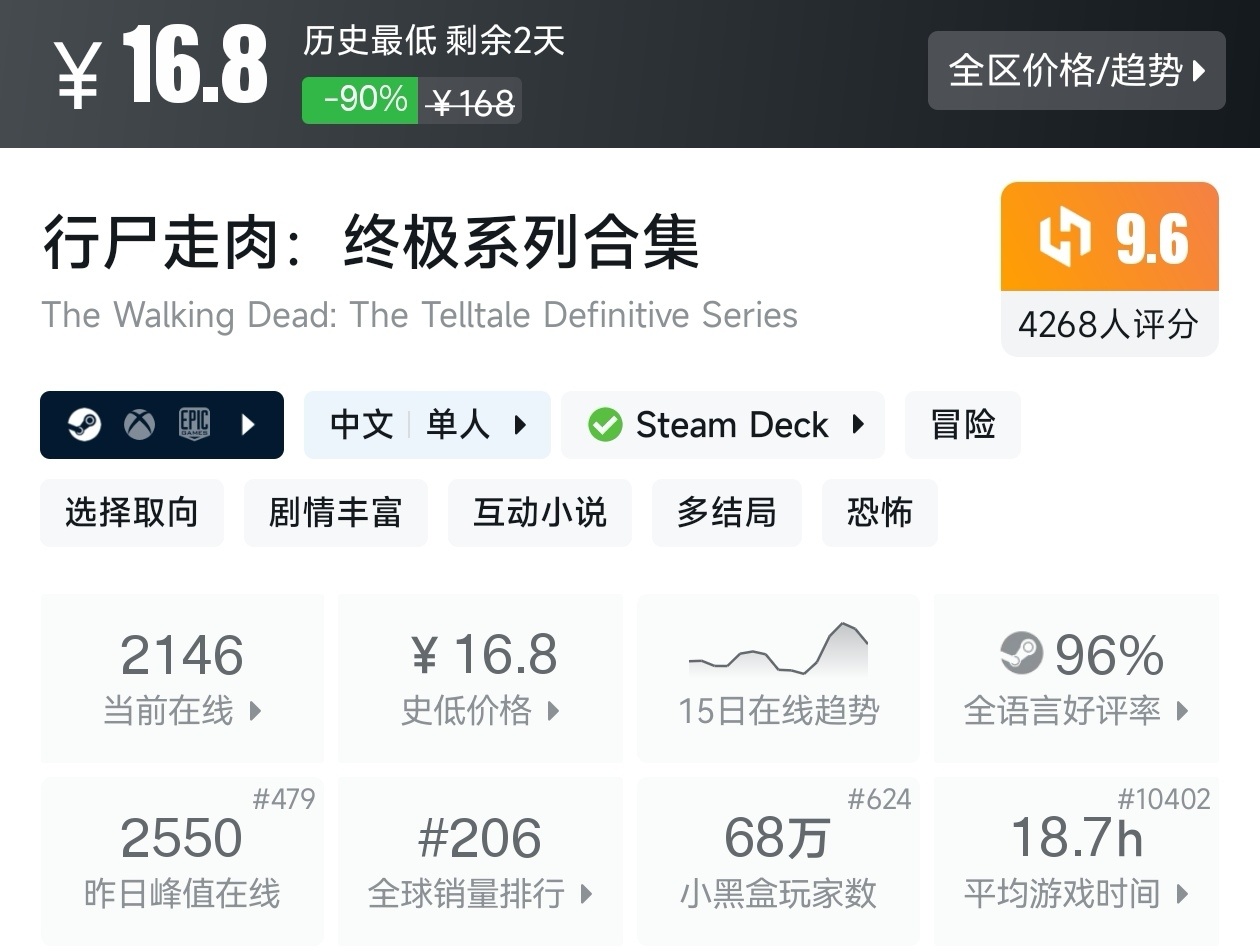 大家好,沒錯,又是我,你們的老朋友亦然,在今天,就是冬促倒計時三天了,有很多遊戲都已經搶跑了冬促,其中就有很多那些價格在一折的遊戲,不僅擁有很高的性價比,遊戲質量還很高,我將爲各位進行一個彙總,希望我的彙總,能夠幫助各位盒友挑選心儀的遊戲。
