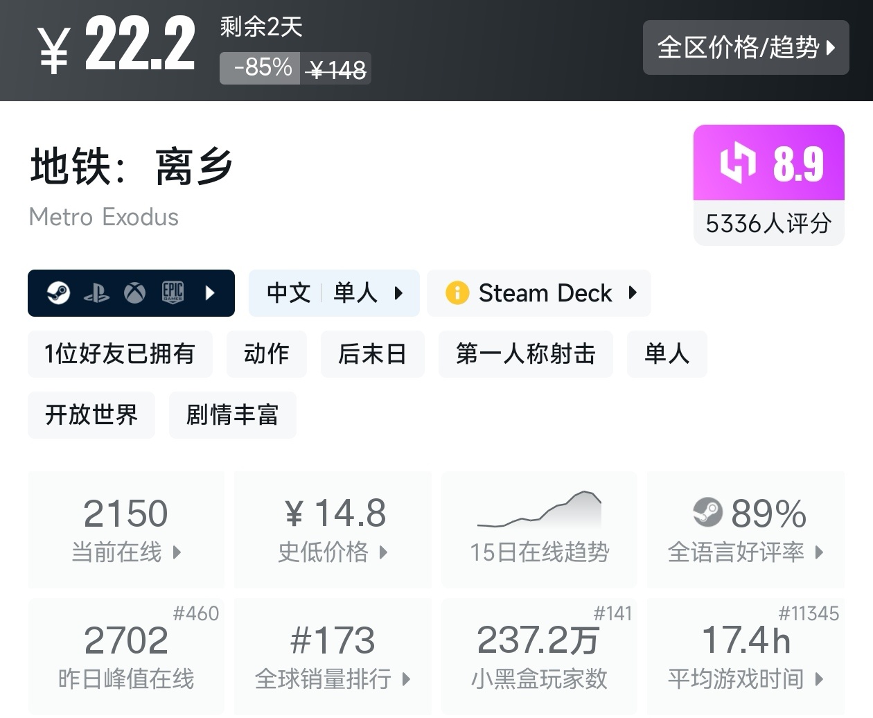 全場骨折價!Steam12月16日33款一折遊戲折扣彙總
