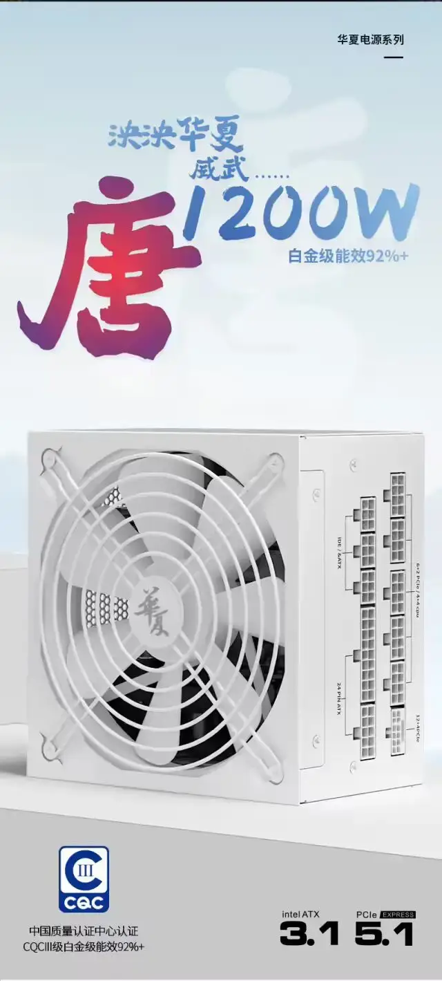 長城推出1200W華夏・唐全模組電源:CQCⅢ級“白金級”能效