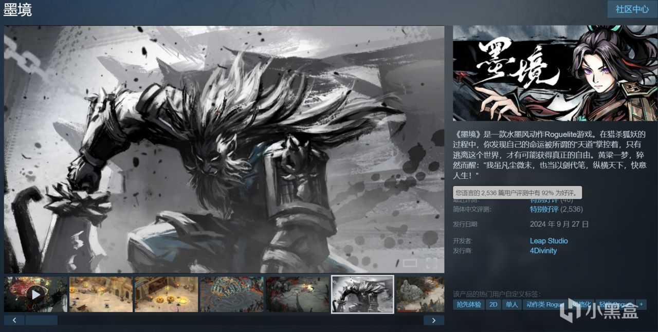 《墨境》是一款水墨风动作Roguelite游戏。在猎杀狐妖的过程中,你发现自己的命运被所谓的“天道”掌控着,只有逃离这个世界,才有可能获得真正的自由。黄粱一梦,猝然而醒:“我虽凡尘微末,也当以剑代笔,纵横天下,快意人生!”